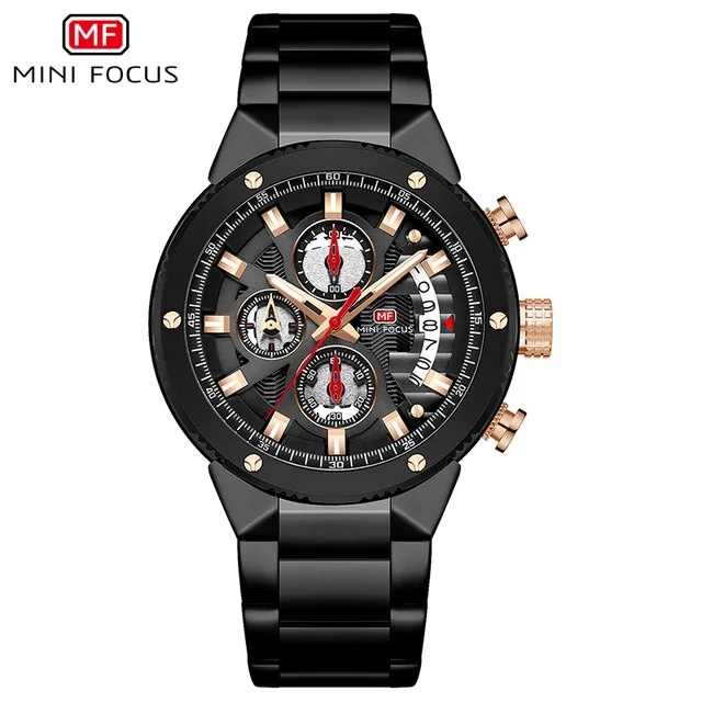 MINI FOCUS -MF0402G- Montre chronographe pour homme avec un bracelet de montre en Silicone. Le mouvement à quartz et les aiguilles lumineuses.La montre est étanche jusqu'à 30M